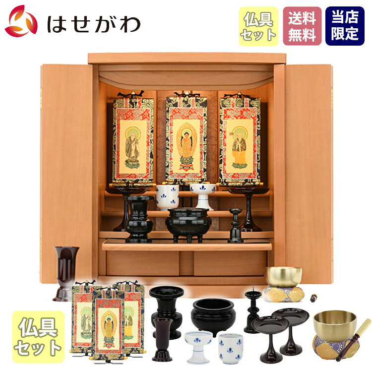 [マラソン中クーポン+P最大20倍]仏壇セット 仏壇 おしゃれ ミニ仏壇 仏具セット モダン 新型 仏具 おりん 掛け軸付き 掛軸セット シンプル 仏壇セット【新型トーシ アンサー メープル調 16CP 仏具セットC】お仏壇のはせがわ